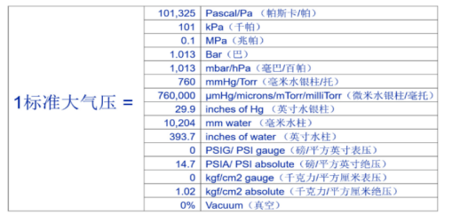 我國法定壓力單位為帕斯卡(簡稱帕),符號為Pa,我國常用非法定壓力單位為巴、亳巴、托、標準大氣壓、工程大氣壓、毫米汞柱等。壓力單位換算關系如下: